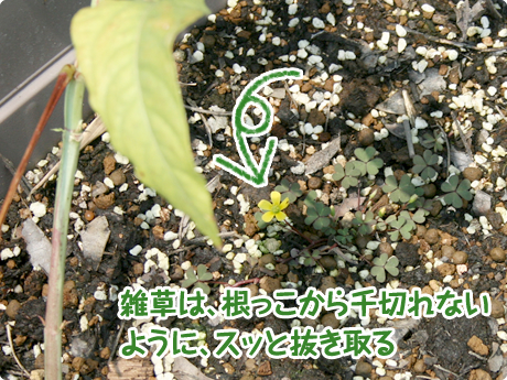 雑草は、根っこから千切れないように、スッと抜き取るのがコツ(≧∀≦)