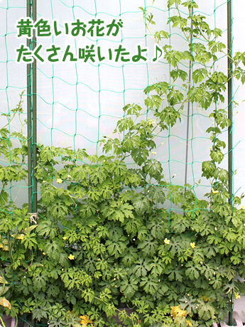 わーい!のんびり育っていたミニゴーヤーだけど、ちゃんとお花が咲いてた♪