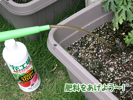 「土が乾いたらプランターの底から流れ出てくるまで、たっぷりお水!」。
