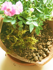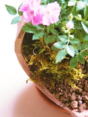 培養土を覆うように、水ゴケを敷き詰めます。水ゴケは土の崩れを防ぐほか、水もちがよいので乾燥予防にもなります。