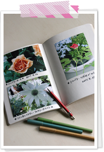 ガーデニングノートは、あなたのガーデニングの記録帳です。タネをまいた日、芽が出た日、肥料や薬剤をつかった日をメモしたり、咲いた花の写真を貼ったり。欲しいお花の名前やお気に入りのガーデンショップ名を書き留めたりと、自由に使ってみてください。