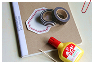 ノート、手芸用接着剤、爪楊枝。そのほかハサミ、新聞紙、ティッシュペーパー、好みのラベルやテープなど。