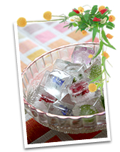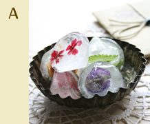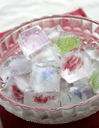 最近は、さまざまな形のシリコン製製氷皿が出回っています。写真は宝石型のもの。花や葉が、より立体的に見えて、リッチな雰囲気に。