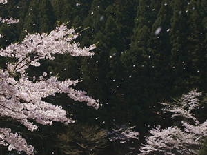 桜吹雪は背景に注意