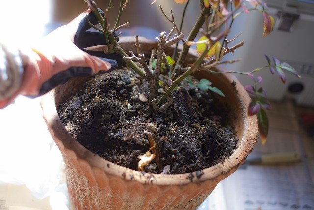 鉢に植えたバラの植え替えも、休眠中である2月のうちに行っておきたい作業の1つです。