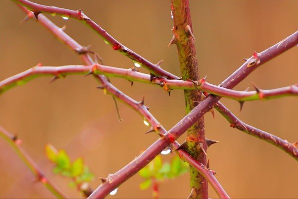 バラの健康状態を見分けるポイントとなる枝の色。