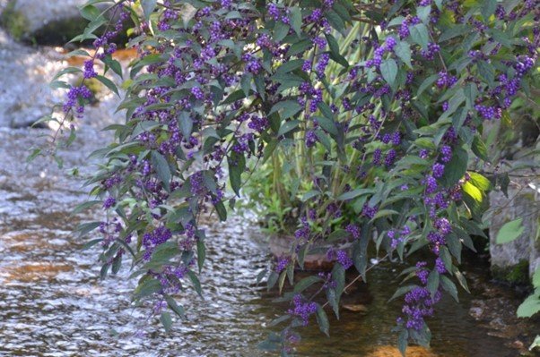9~11月に美しい紫の実を実らせるクマツヅラ科のコムラサキ。