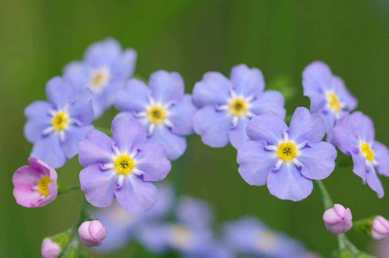 品種改良によって青以外にも、白やピンクのワスレナグサがあります。花言葉には「私を忘れないで」のほかに「真実の愛」という意味もあり、カップルや大切な人への贈り物として選ばれることが多い植物です。