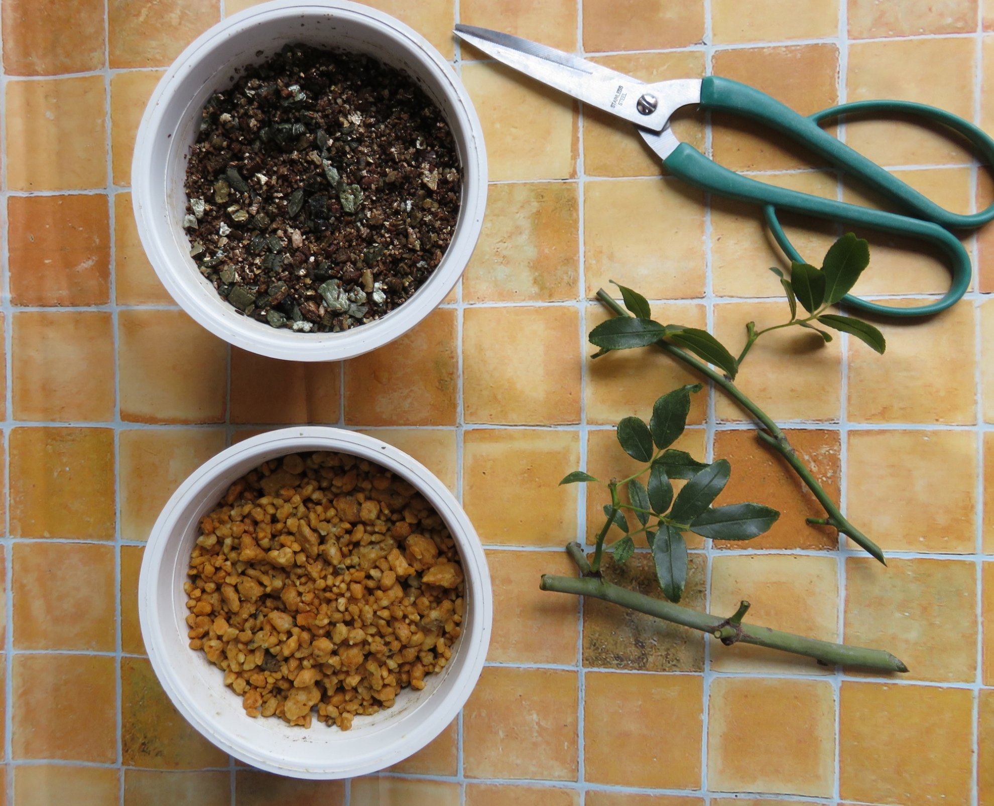 緑枝挿しでのバラの挿し木の手順を、挿し穂作りから順にみていきましょう。