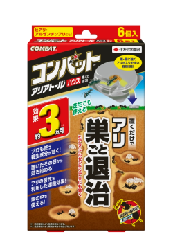 「アリアトールハウスコンバット」プロが使うフィプロニル配合で、アリの巣ごと退治してくれる不快害虫駆除剤です。雨風に強くアリが入りやすい容器設計になっており、置くだけで簡単にアリの対策を行なえます。効果は約3ヵ月と長く置いたその日から効き始めます。