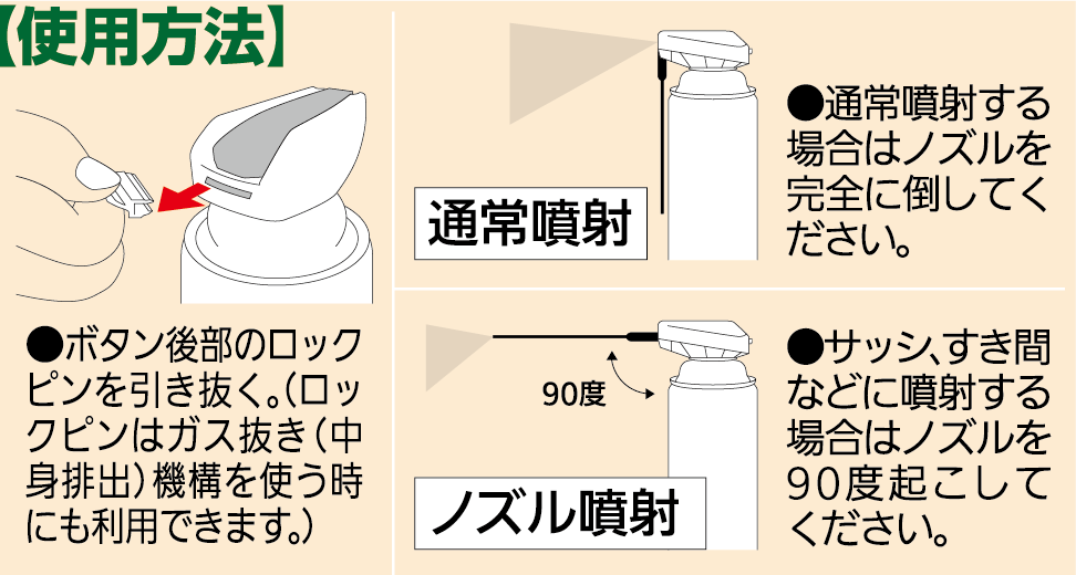 ●体調のすぐれない時は噴射しないでください。人体に向けて噴射しないでください。