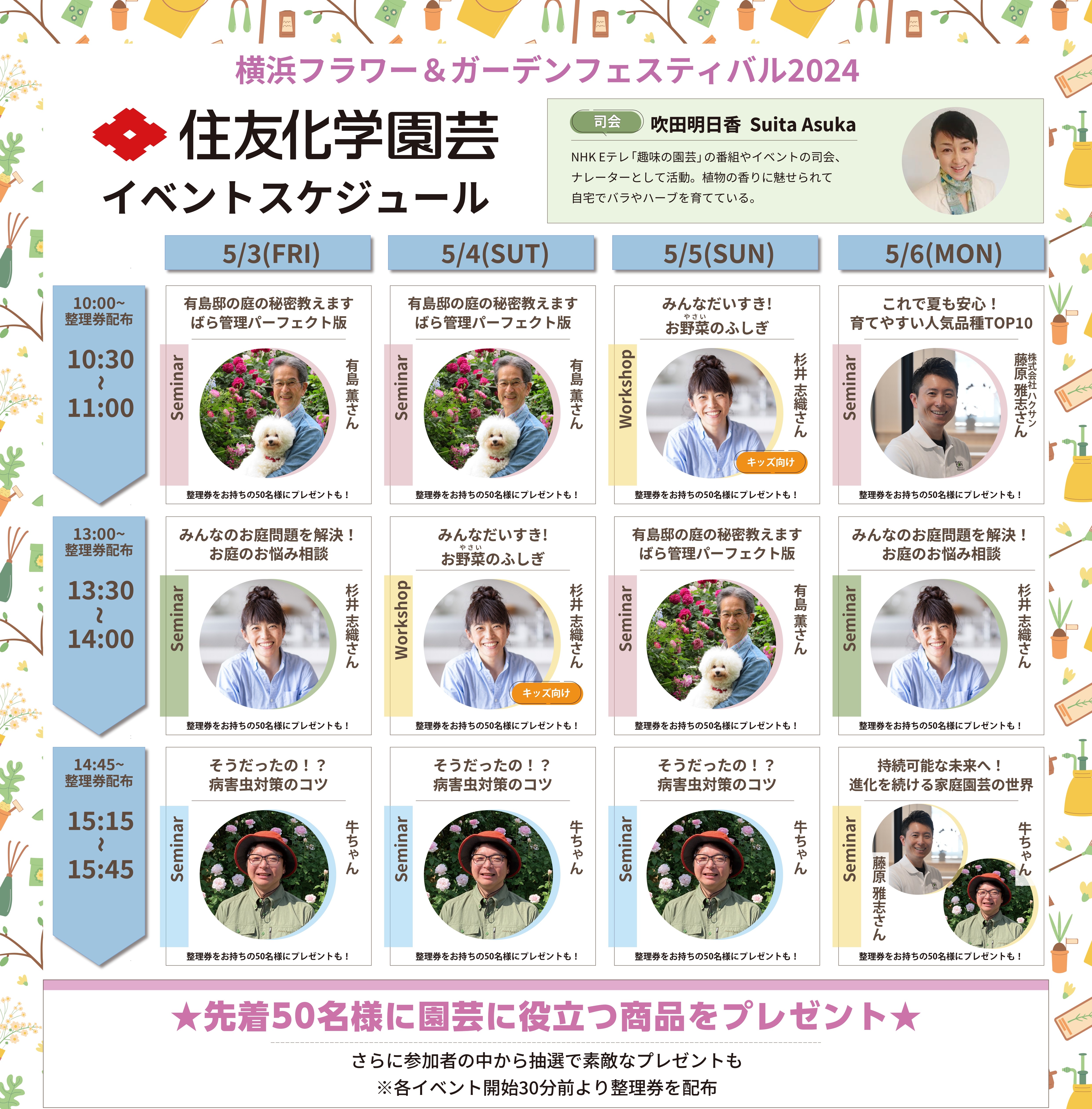 2025年5月3日(土)〜5日(月)にパシフィコ横浜で開催される、横浜フラワー&ガーデンフェスティバル2025に住友化学園芸も出展します🌷