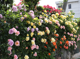 バラ栽培家後藤みどりさん監修のフェンスの仕立て方のページです。フェンス仕立ては手軽につるバラを仕立てる方法のひとつです。フェンス仕立ての方法や、フェンス仕立てにおすすめのつるバラの品種の説明をします。また、仕立てたバラの管理の方法とバラの管理に役立つ住友化学園芸の商品についても併せてご紹介しています。