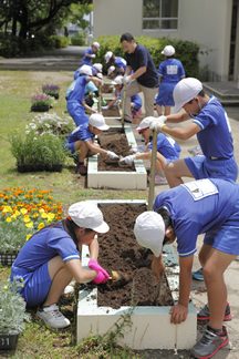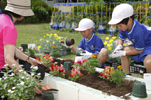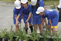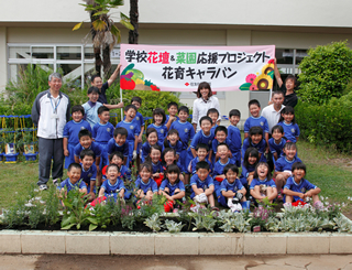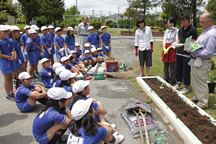 本校ではビオトープや学校ファームで園芸活動を行っていますが、その活動をより充実したものへと変えていきたい、子どもたちにも育てる楽しさや素晴らしさを味わわせてあげたいとの切なる思いから、花育キャラバンに応募しました。