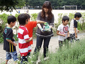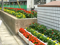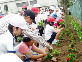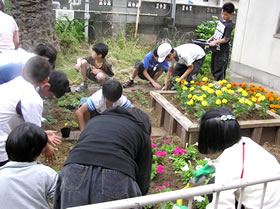 本校では、保護者・地域の方々との連携を深めるために、19年度に「神石みどりの会」(会長:自治連合会会長)を立ち上げ、本校の特色ある環境教育の一つである緑化活動を進めています。校内では、5・6年児童で構成する理科・栽培委員会が季節毎の草花を育ててます。