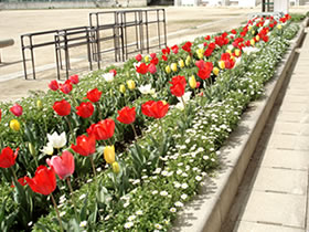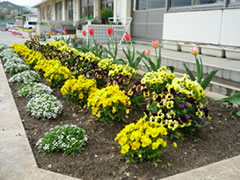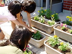 4年生が園芸委員会を担当し、学校の周りにプランターで花を育てています。卒業式や入学式は、園芸委員会の子が世話をして育てた花で会場を飾っています。今年は2年生がトマトの栽培にも挑戦します。