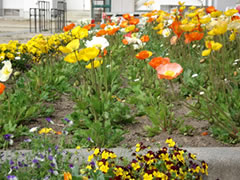 春花壇には,チューリップ,ポピー,ネモフィラ,パンジー等が咲いていました。これから,サンパチェンスに挑戦したり,昨年度もやったアサガオのグリーンカーテンづくりをしたり環境教育に役立てていきます。更に土づくりにも挑戦したいと考えています。