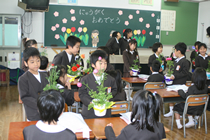 本校は外国人が全児童の20%以上います。花を美しいと思う気持ちは万国共通です。