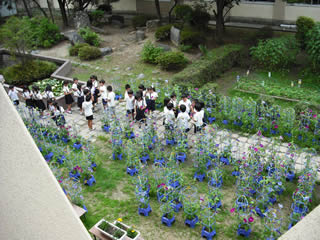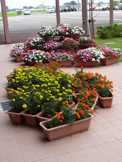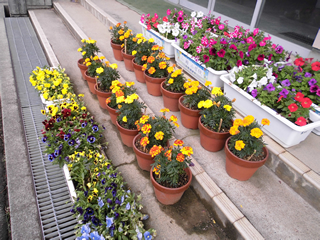 ![]() 一人一鉢の花。卒業式や入学式の時会場や通路に並べています。来賓・保護者にも喜ばれています。 |