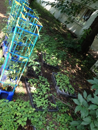 アジサイなど挿し木ができるものは、ふやしていき、植木鉢を各クラス分作るなどしていきたいと考えています。中庭に卒業制作の作品がいくつかあり壊れかけているために、立ち入り禁止の場所が一部あります。そこに、宿根草やこぼれ種で育つものを育てていきさらに児童が明るく感じられる中庭にしていきたいと考えています。