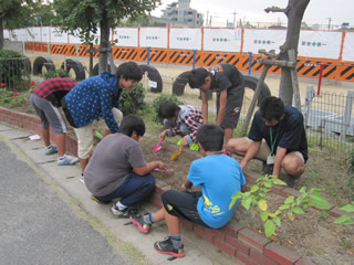 アジサイなど挿し木ができるものは、ふやしていき、植木鉢を各クラス分作るなどしていきたいと考えています。中庭に卒業制作の作品がいくつかあり壊れかけているために、立ち入り禁止の場所が一部あります。そこに、宿根草やこぼれ種で育つものを育てていきさらに児童が明るく感じられる中庭にしていきたいと考えています。