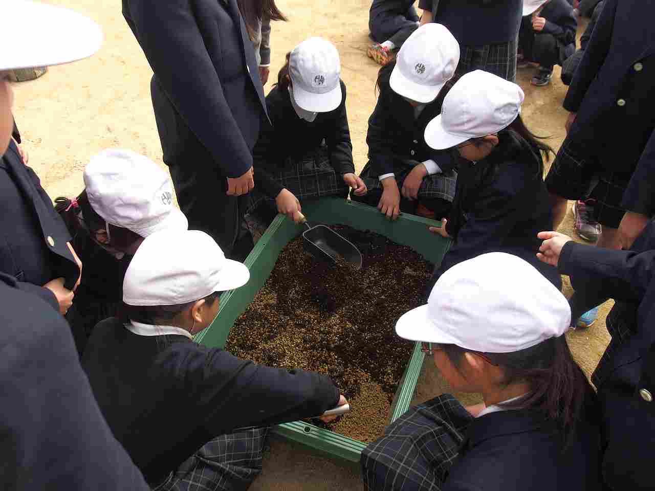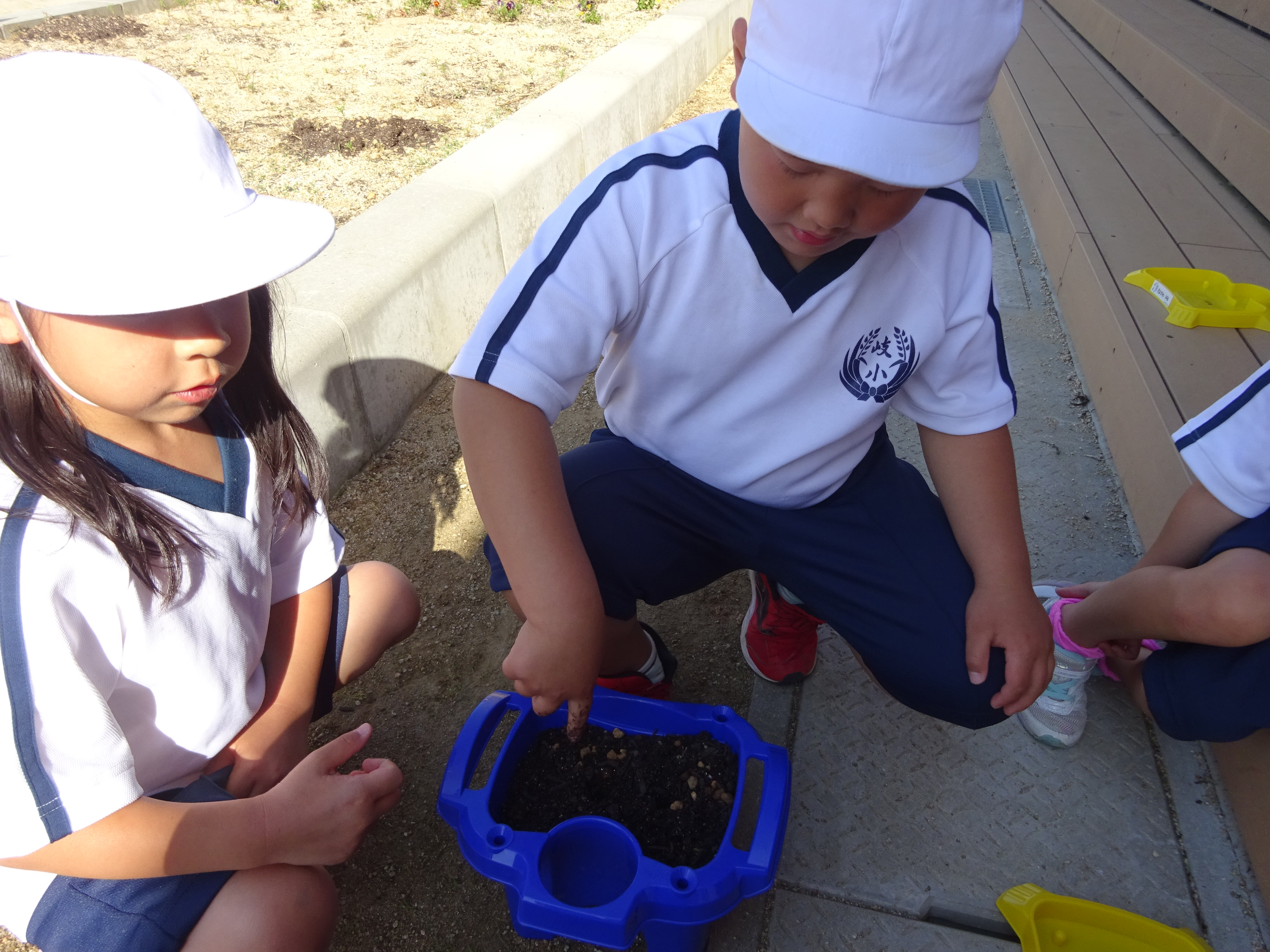 1年生がアサガオの種まきをしているところです。