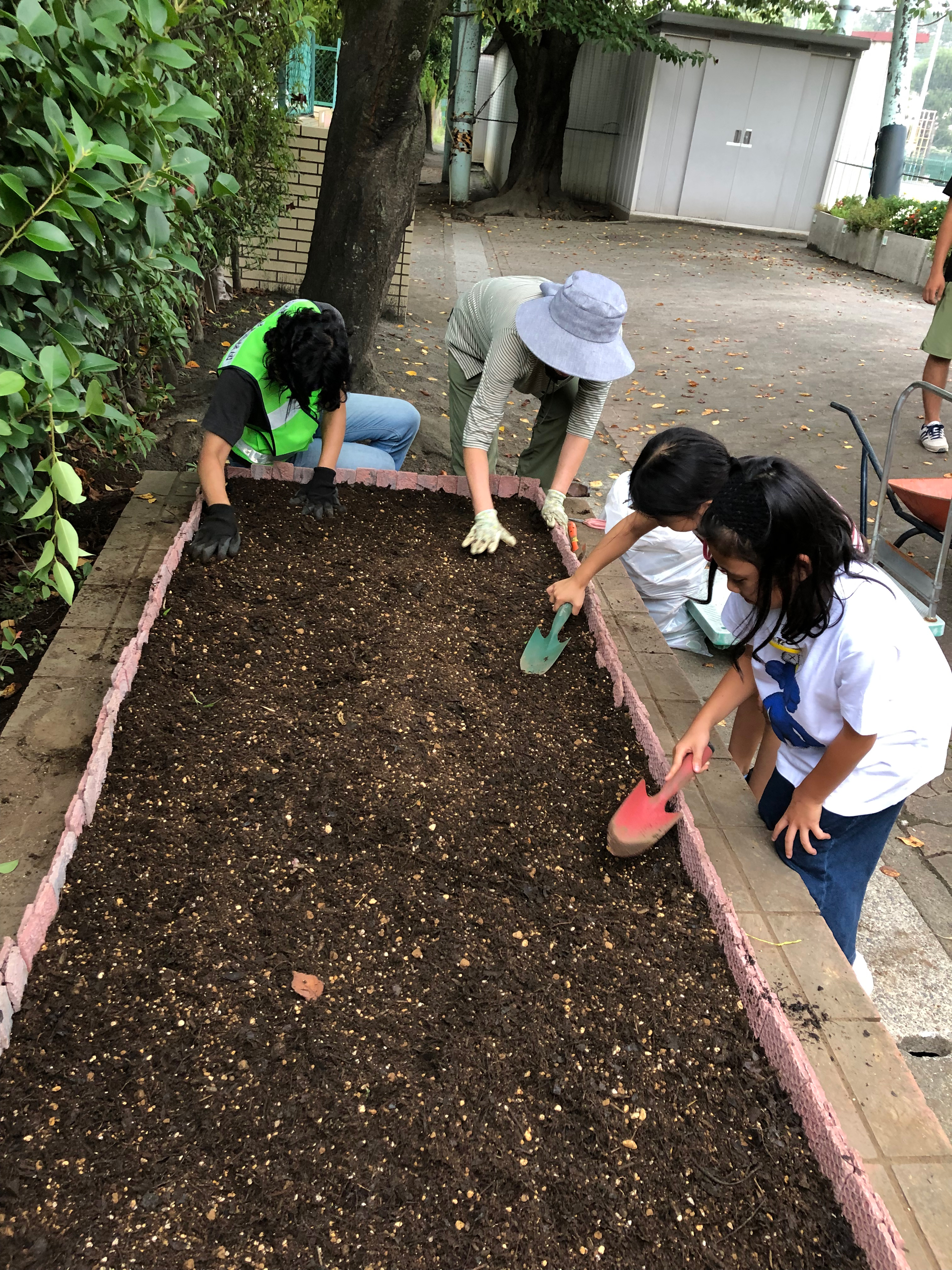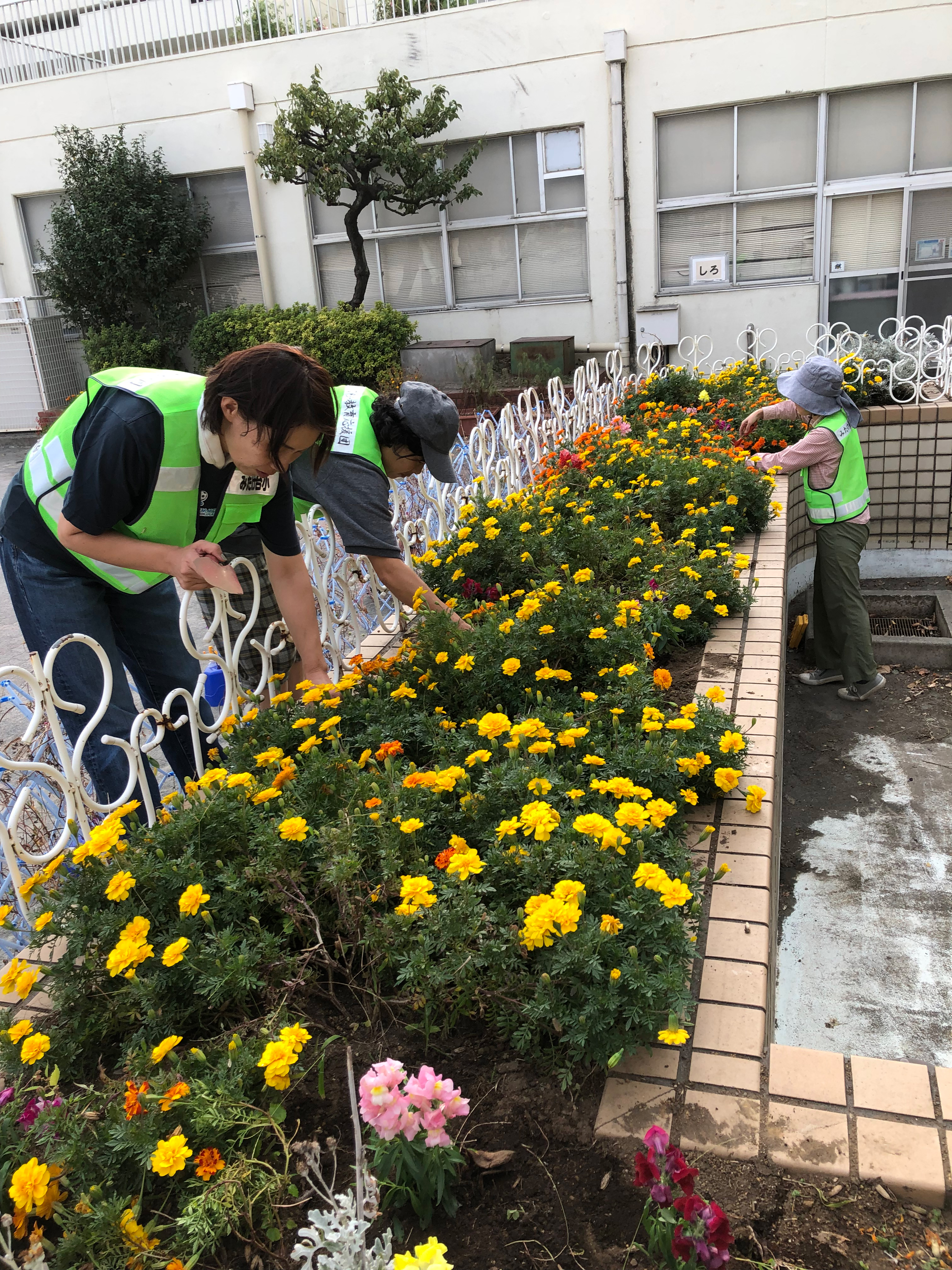 「みんなで花壇をきれいに保つ共同作業!」