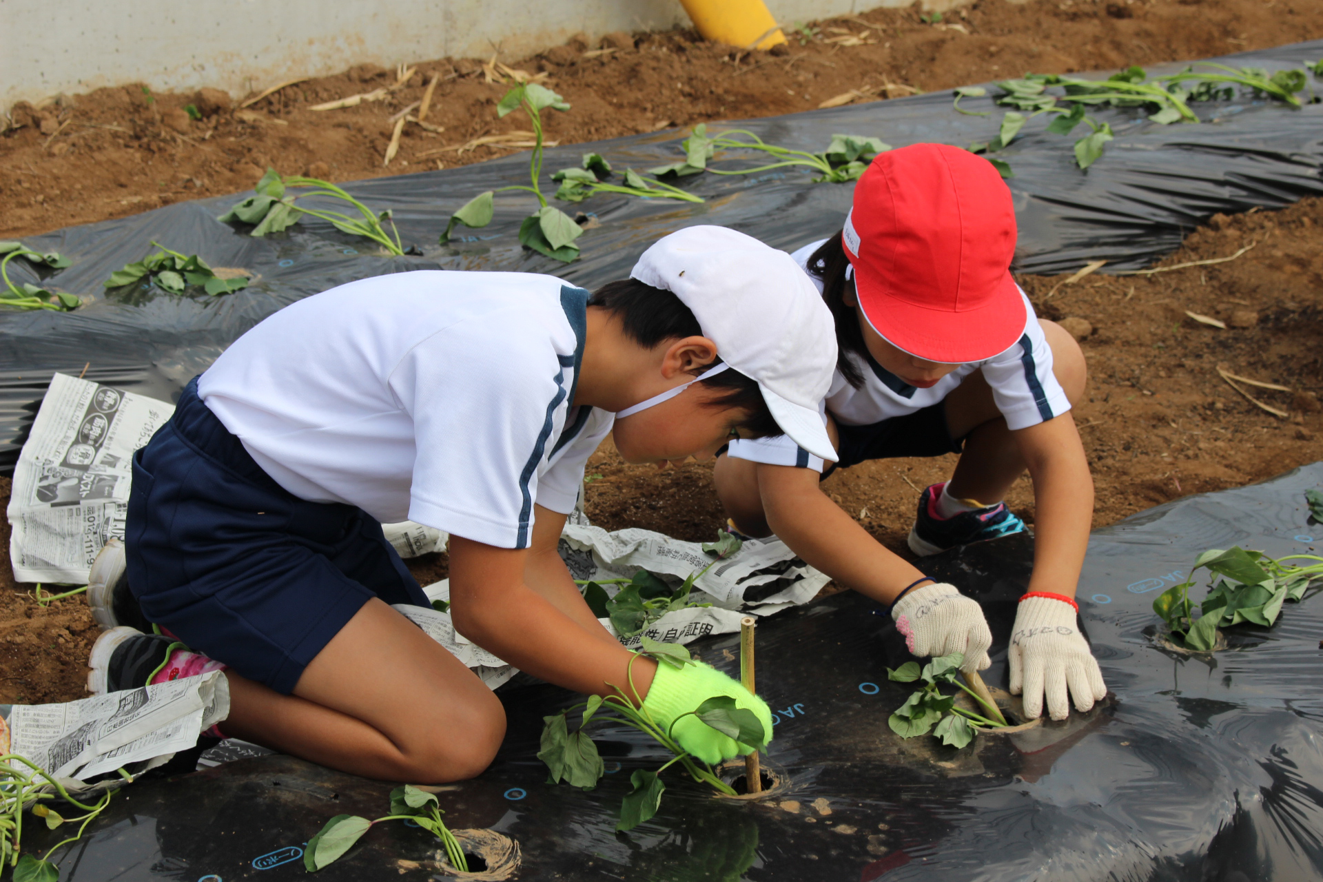 2年生が芋の苗植えをしているところです。