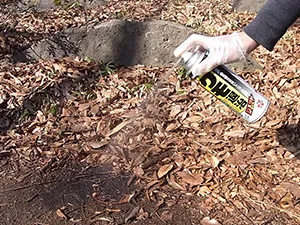 姿の見える不快害虫には速効的な薬剤を直接散布して退治しますが、庭のどこかにいてときどき姿を見かける不快害虫には残効性のある薬剤を全面あるいは帯状に散布、巣の中のアリまで退治する薬剤、クモやナメクジが嫌がって近よらない(クモの巣を張らせない)ようにする薬剤、食べさせて退治する薬剤などさまざまな剤型や用途ががあります。害虫の生態や状況、目的に合わせて選び、適切に使用します。