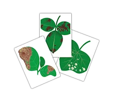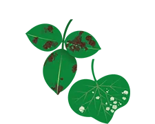 原因は糸状菌(カビ)、細菌、ウイルスなどによっておきますが、養分不足、日焼け、害虫の寄生、大気汚染物質などによっても同じような症状が現れることもあります。