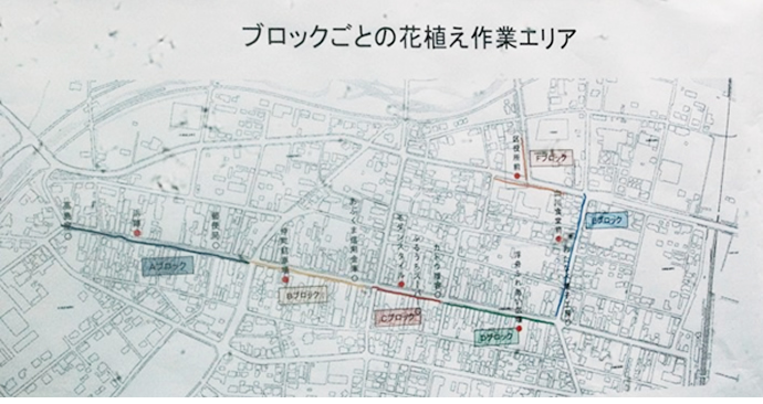 公共の場所のいろどりにするとともに復興の早期実現を目指した園芸活動の参加者は、被災者ご自身および地域のボランティア、復興支援ボランティアから構成され、年に延べ2万人が共に活動をしています。商店街の中 (駅前通り商店街)、JR小高駅前通りの街路樹まわりの花壇 、その他ボランティアセンター近辺や小高川の堤防などを緑化場所の対象として、花壇、プランターを含む約 30,000 平方メートルの面積規模で行っています。