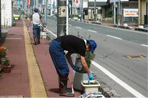 石巻市アイトピア商店街の中や、石巻市アイトピア通りの街路樹とそのまわりの花壇で園芸活動を行っています。公共のいろどりにしたり、植物による癒しを皆さんと共有するため、町内約15カ所の花壇に、商店街にかかわる方々やご近所さんなど約30名で活動しています。