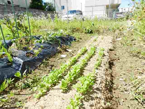 いただいた野菜の種を空き地の畑に蒔いてみたと