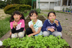 児童数が28名と少ないため、地域のおばあちゃん方に農園協力隊としてご協力いただいています。