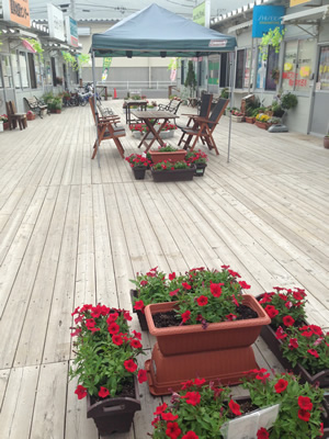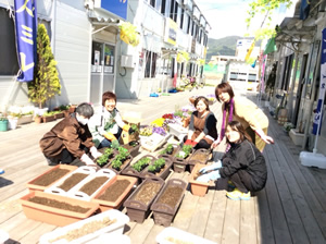 被災した商店街の商店主・従業員たちで仮設の商店街が彩りと癒しの空間になるよう花を育てています。