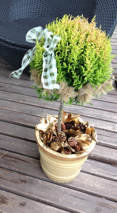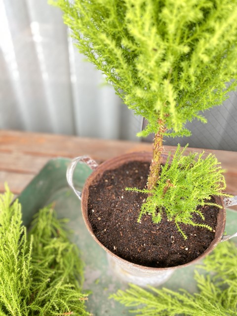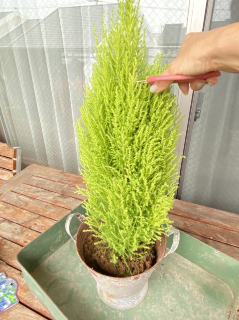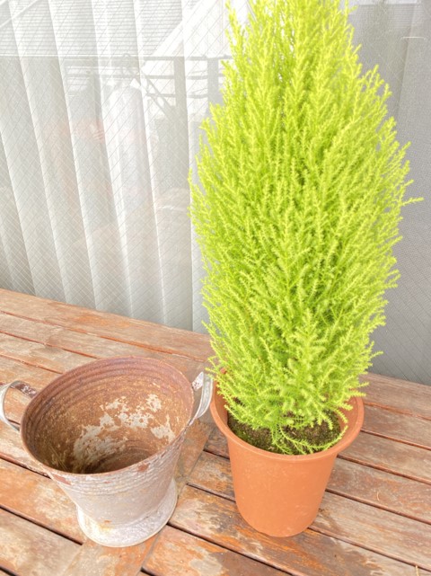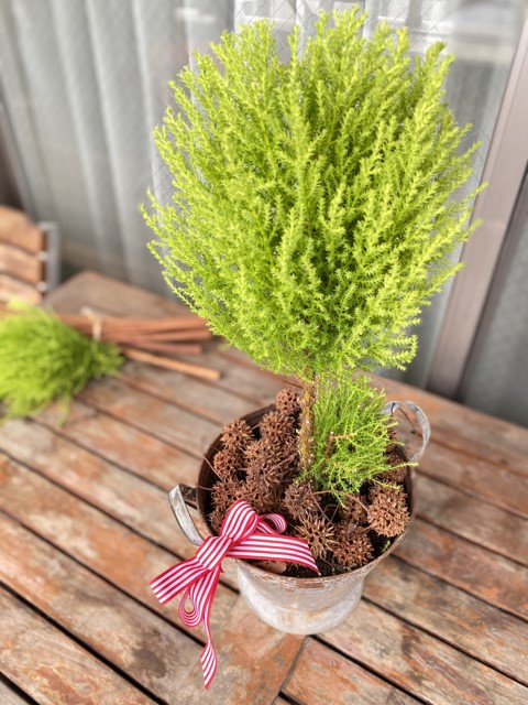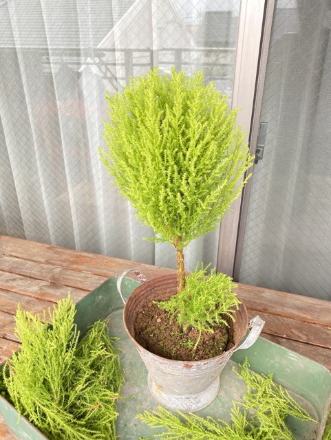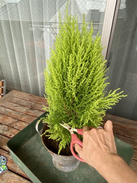 枯れてないコニファーで、管理しやすいクリスマスツリーをつくるよ!