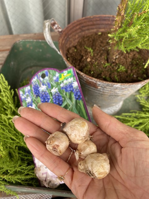 チョキチョキしたら株元もさっぱりしたので同じ鉢にムスカリを植えまーす!