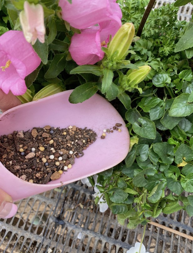 そう、長く育てて、小さな蕾まで全部欲張りに咲かせるために、土に最初からお薬や栄養を混ぜる土作りをします。
