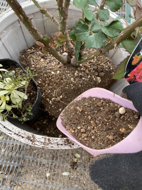 買ってきたバラは一回りから二回りぐらい大きな鉢に植え替えるのがおすすめ。