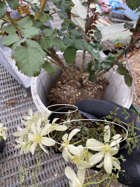 クレマチスはビニールポットに入っている状態で根の形を変形させてね!