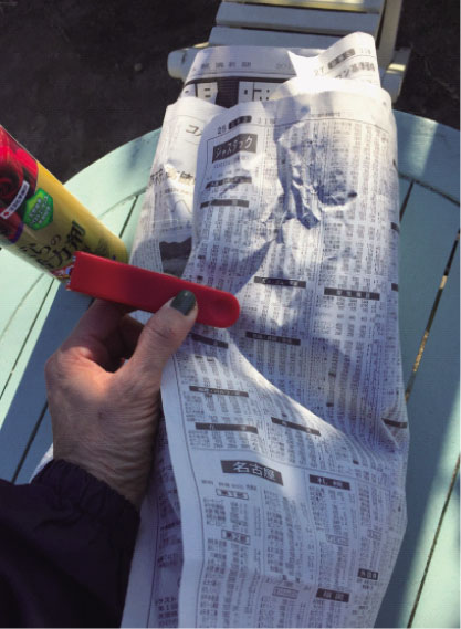 新聞紙でくるんだ鉢をまるごとそのままピロくんにドボンってつけるんだよ。